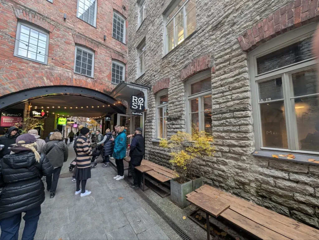 Tucked away in one of Tallinn’s most vibrant alleyways, RØST is a beloved local café and bakery known for its artisan sourdough breads, hand-crafted pastries, and perfectly brewed specialty coffee. With the comforting aroma of freshly baked goods spilling out onto the cobblestone lane and inviting benches surrounded by potted greenery, it’s no surprise you’ll often find a lively crowd gathered outside—locals and visitors alike seeking their daily pastry fix or a warm cup of coffee on a cool day.